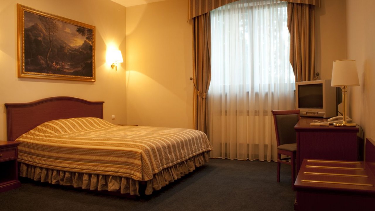 В номере: две удобные отдельные кровати (100х200 см), которые при необходимости легко можно соединить в одну двухспальную (200х200 см), две тумбочки, журнальный столик, два стула и письменный стол, настольная лампа, шкаф с зеркалом, ЖК телевизор, телефон, стеллаж, мини-бар, электрический чайник,   набор посуды, сейф, бесплатный wi-fi, кондиционер